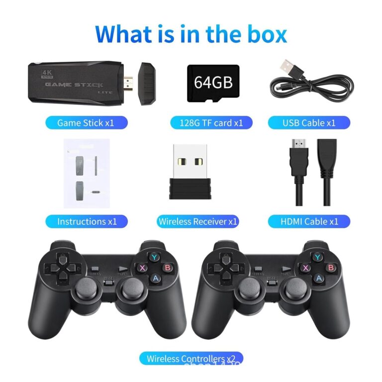ShreejeeDecore Wireless Retro Game Stick for TV | Plug & Play HDMI Console with 15 Emulators & Dual Wireless Controllers | 2-Player TV Gaming System (Black)